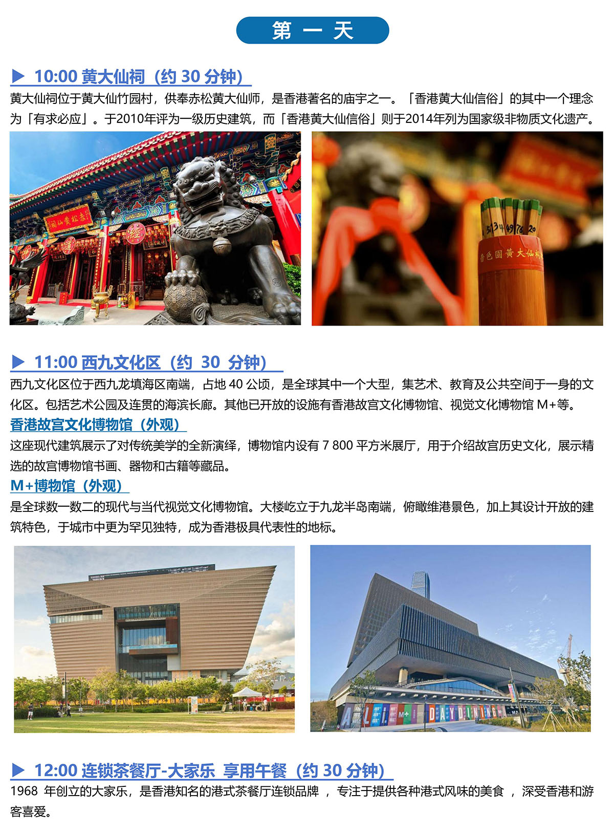 <港澳四日游(香港+自由行+澳门+自由行)>黄大仙祠、星光大道、太平山顶、金紫荆广场、港珠澳大桥、大三巴牌坊、威尼斯人度假村