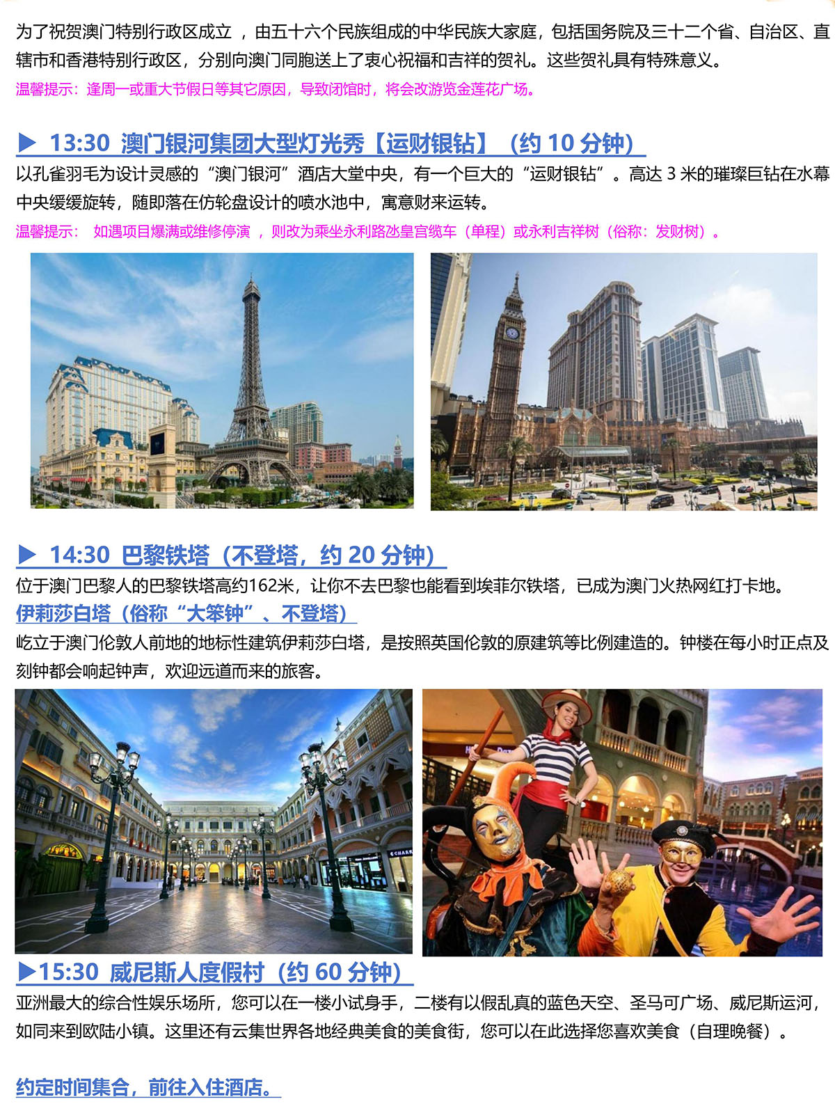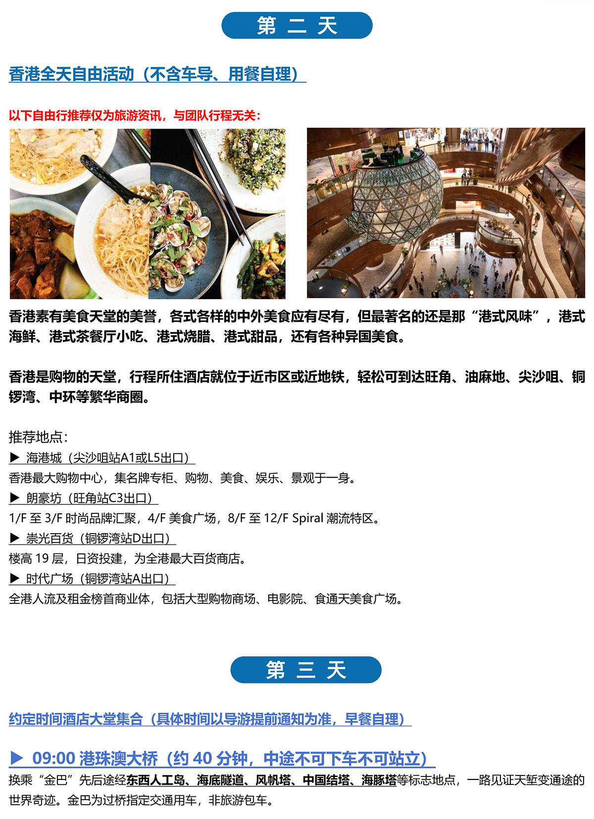2、参加港澳游线路,请出发前提前1天或以上提供出行者的姓名、通行证号、联系电话(开通国际漫游功能)。
