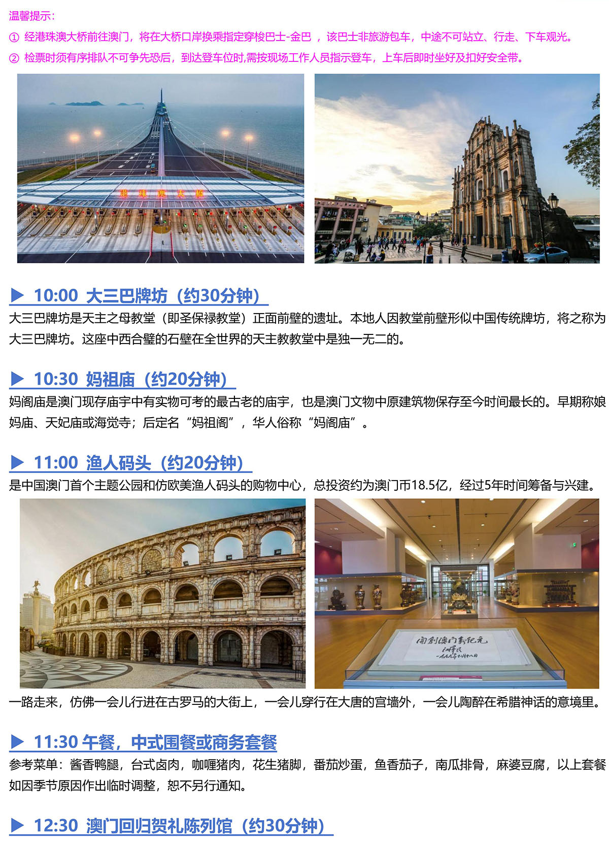 一、证件:必须持有效港澳通行证及有效签注参团并确保资料准确。如持其他证件,出入境风险由游客自行承担。