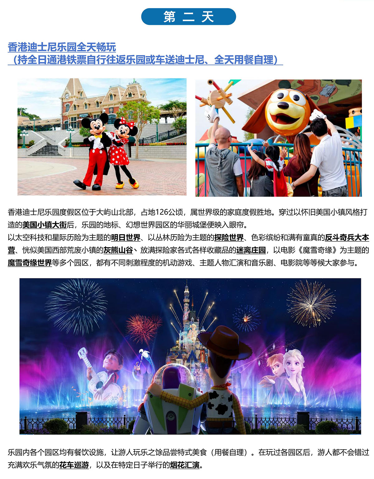 7、迪士尼、海洋公园等有门票景点,导游不陪同游览。如进入景区时有需要寄存行李的,产生的行李寄存费请自理。