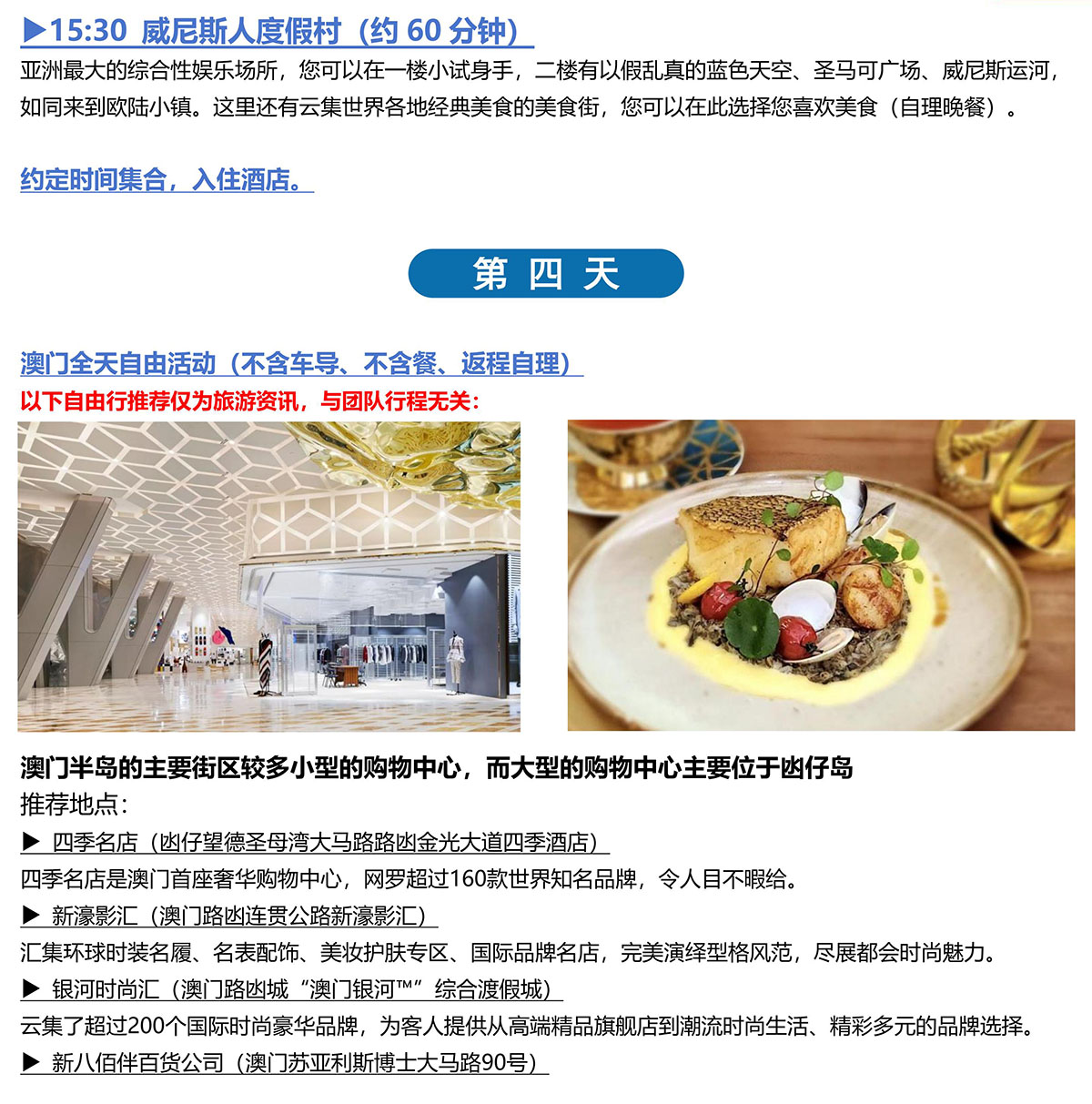 酒店:香港四钻酒店2晚、澳门四钻1晚(单人占半间)