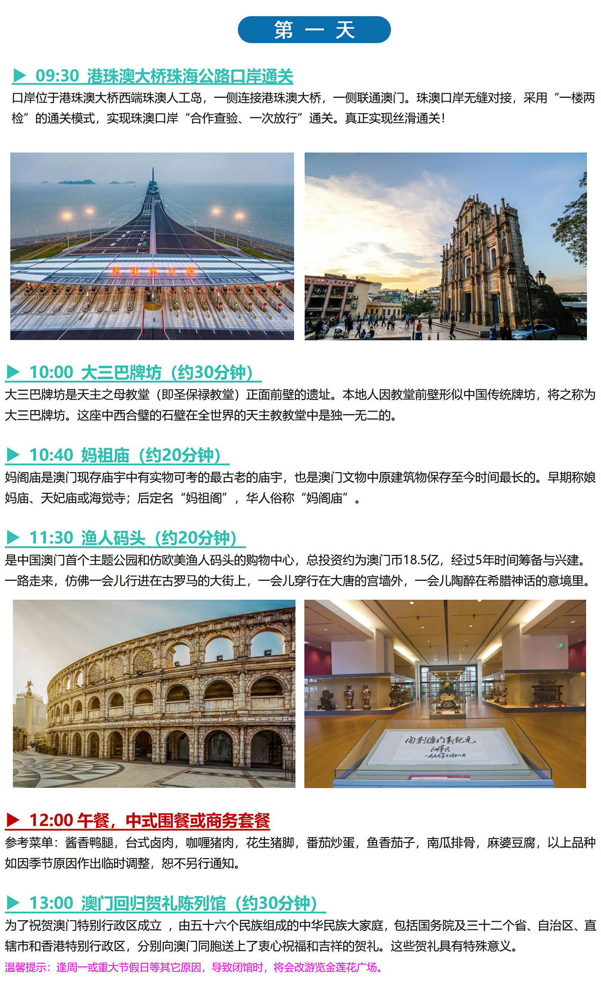 一、证件:必须持有效港澳通行证及有效签注参团并确保资料准确。如持其他证件,出入境风险由游客自行承担。