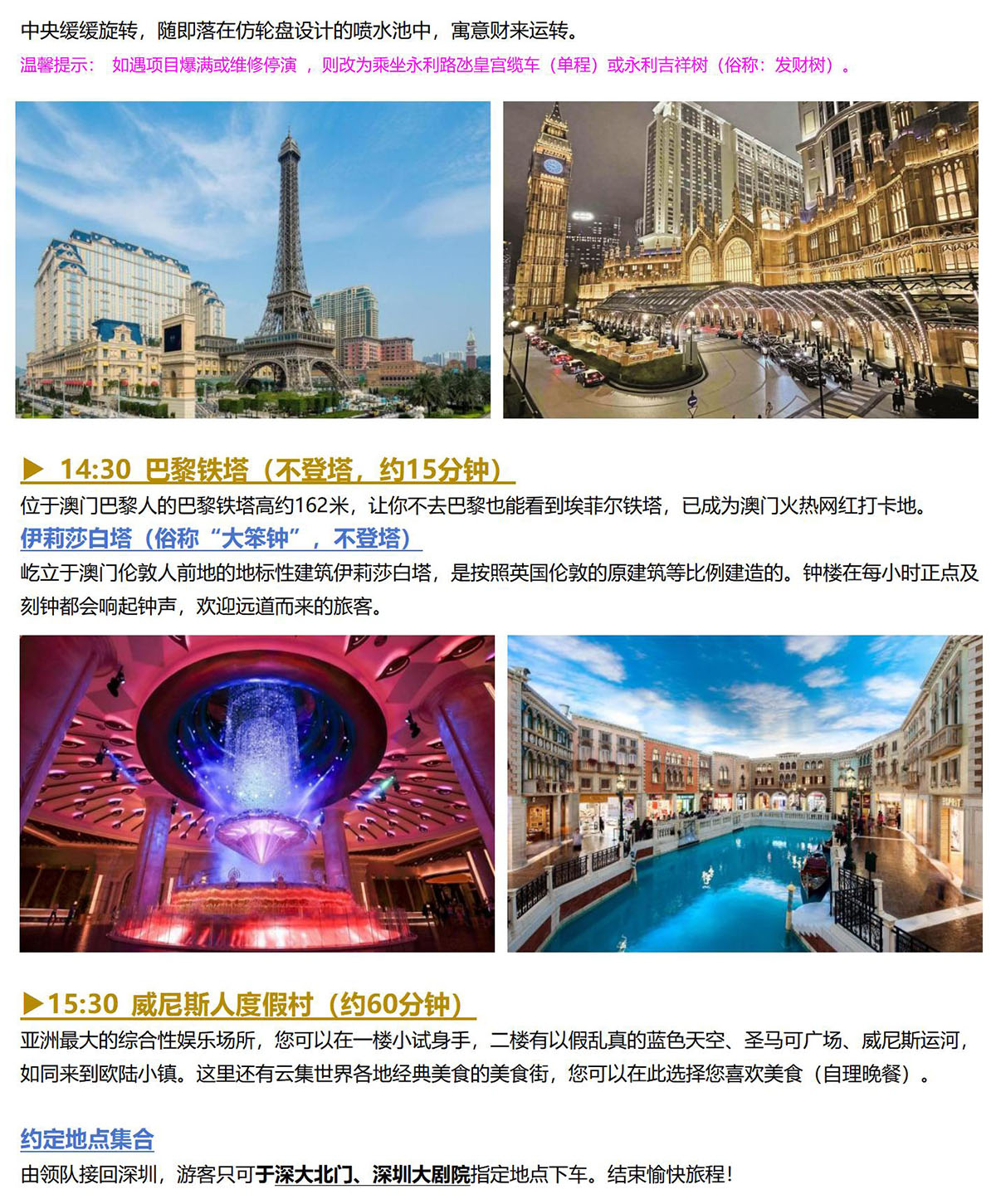 <澳门自助美食一日游>大三巴牌坊、妈祖庙、渔人码头、午餐、澳门回归贺礼陈列馆、澳门银河运财银钻 、巴黎塔&伦敦人、威尼斯人度假村