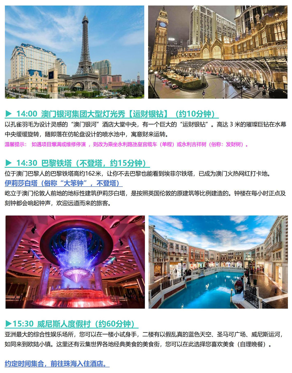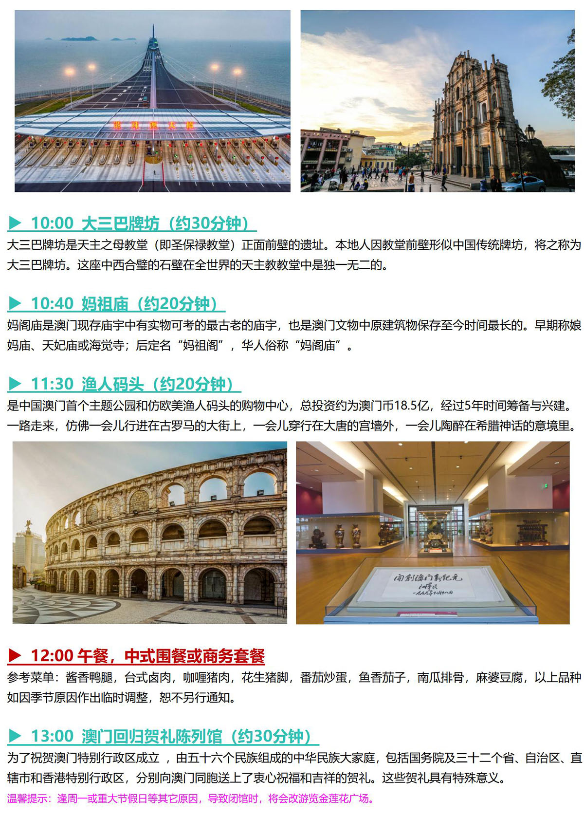 2、参加港澳游线路,请出发前提前1天或以上提供出行者的姓名、通行证号、联系电话(开通国际漫游功能)。