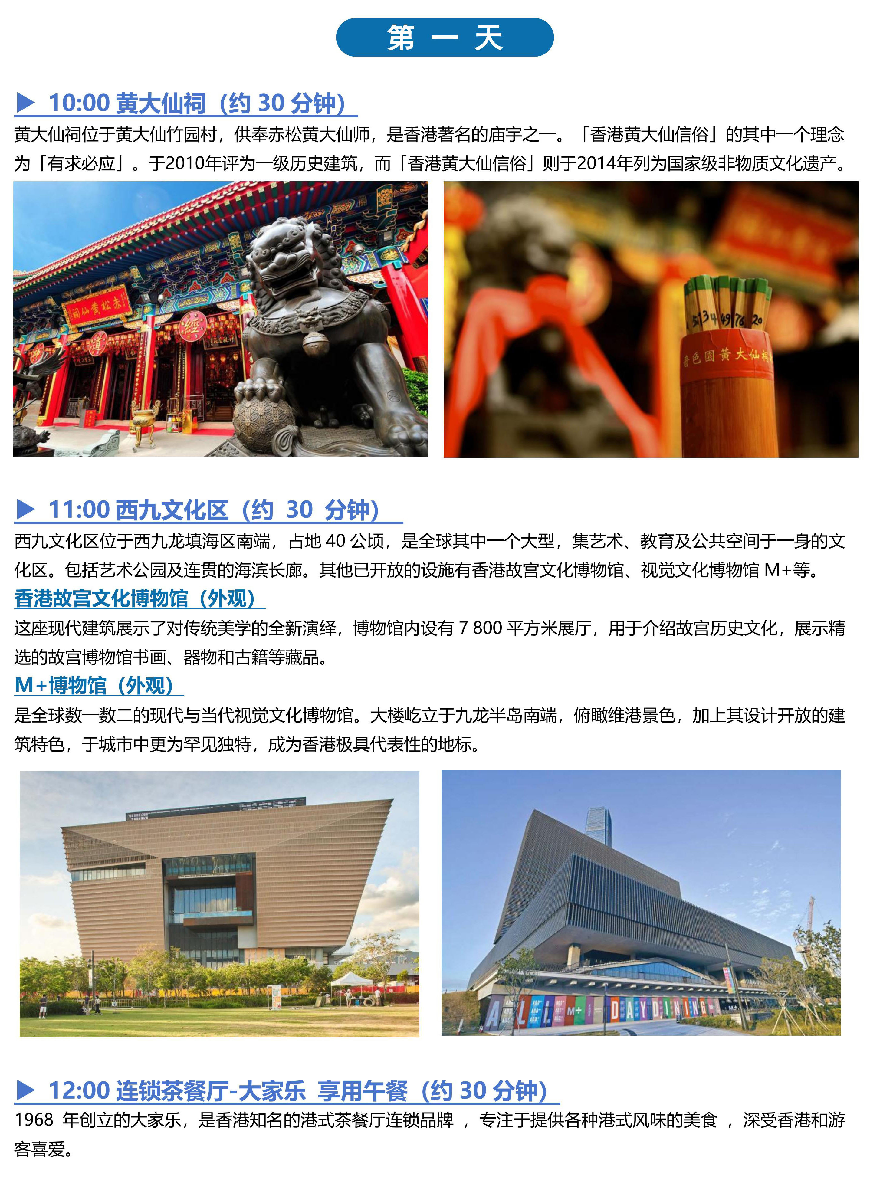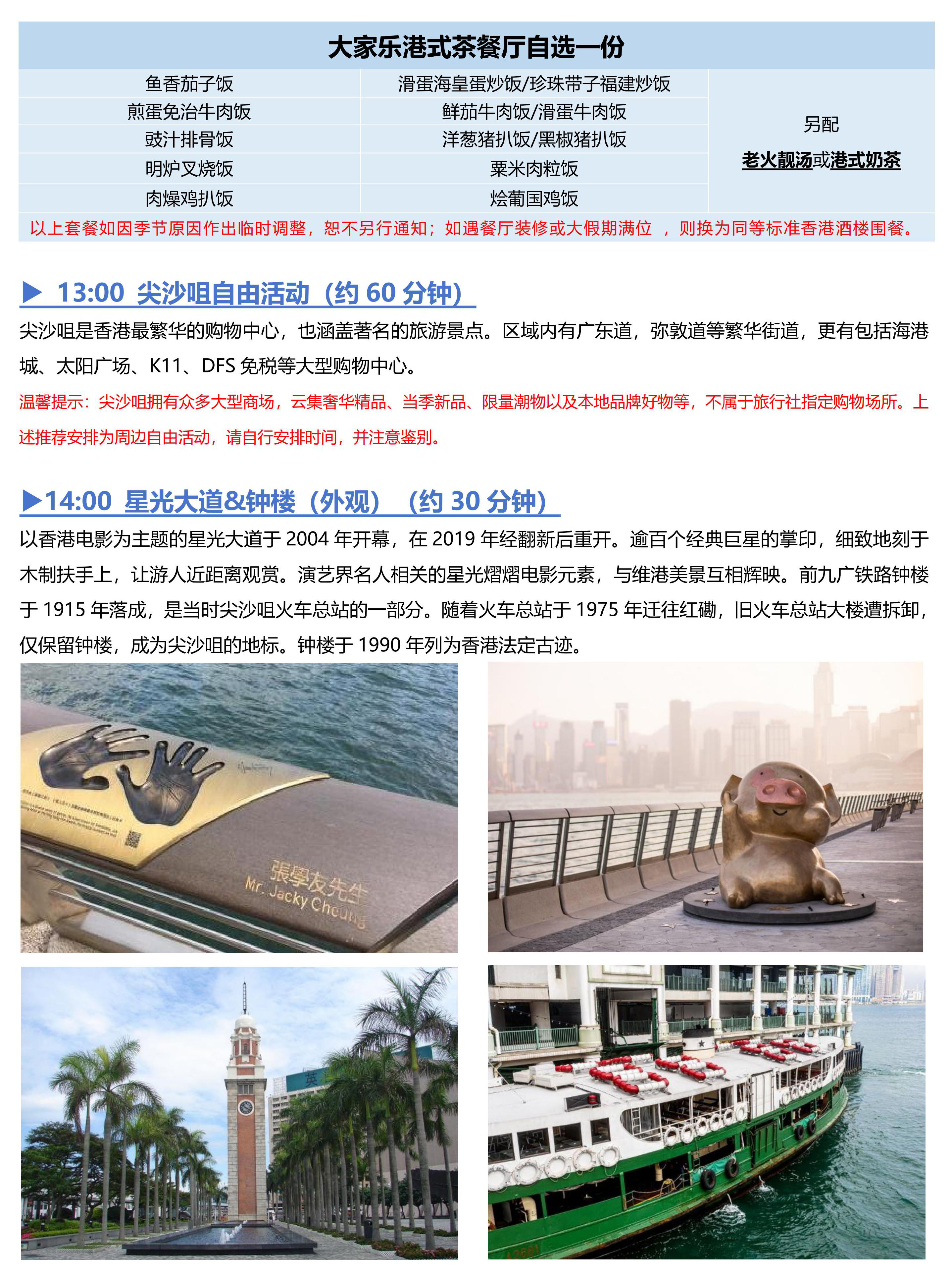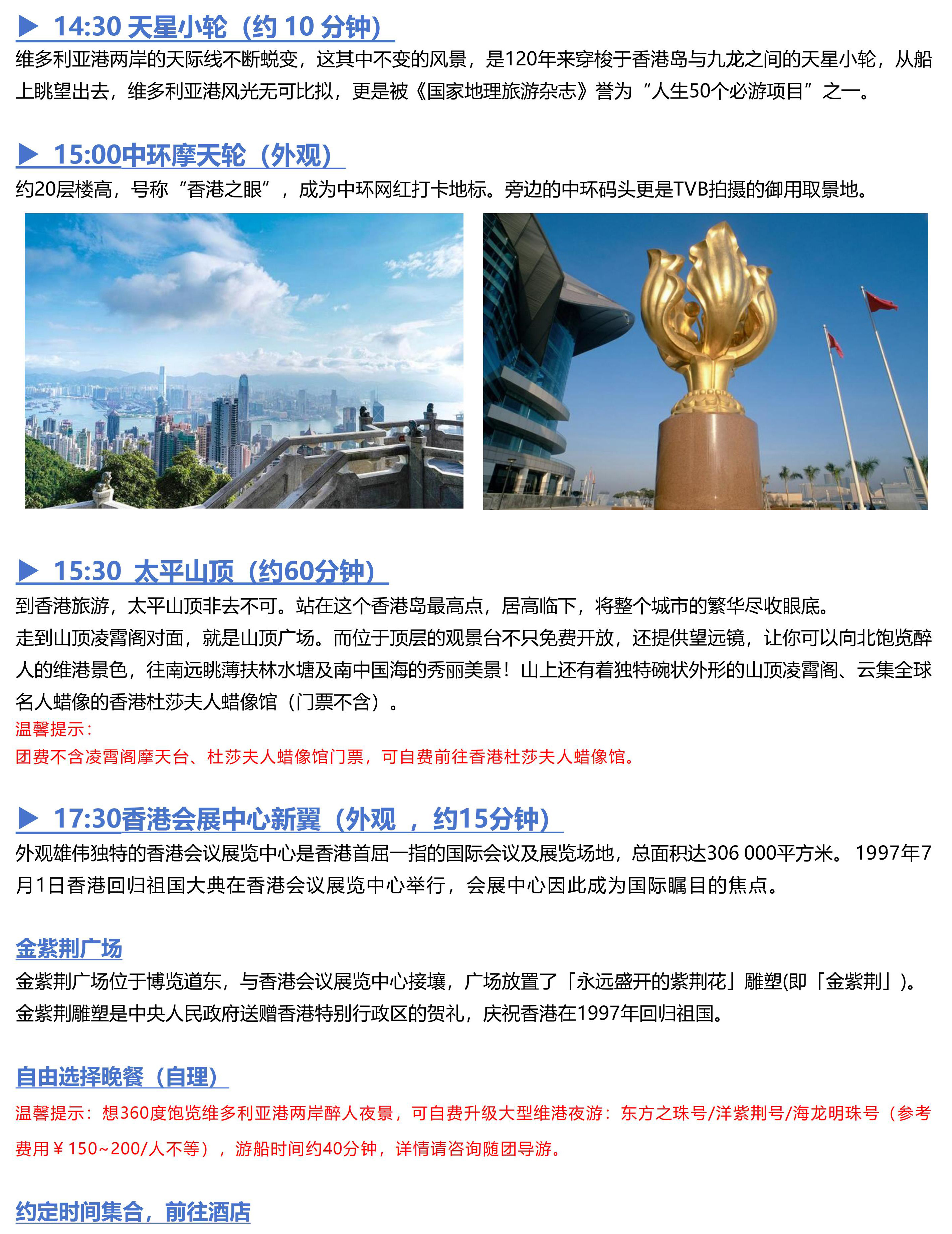 <香港二日游 (香港观光+自由行)>黄大仙祠、香港故宫文化博物馆、尖沙咀钟楼&星光大道、天星小轮、太平山顶、金紫荆广场