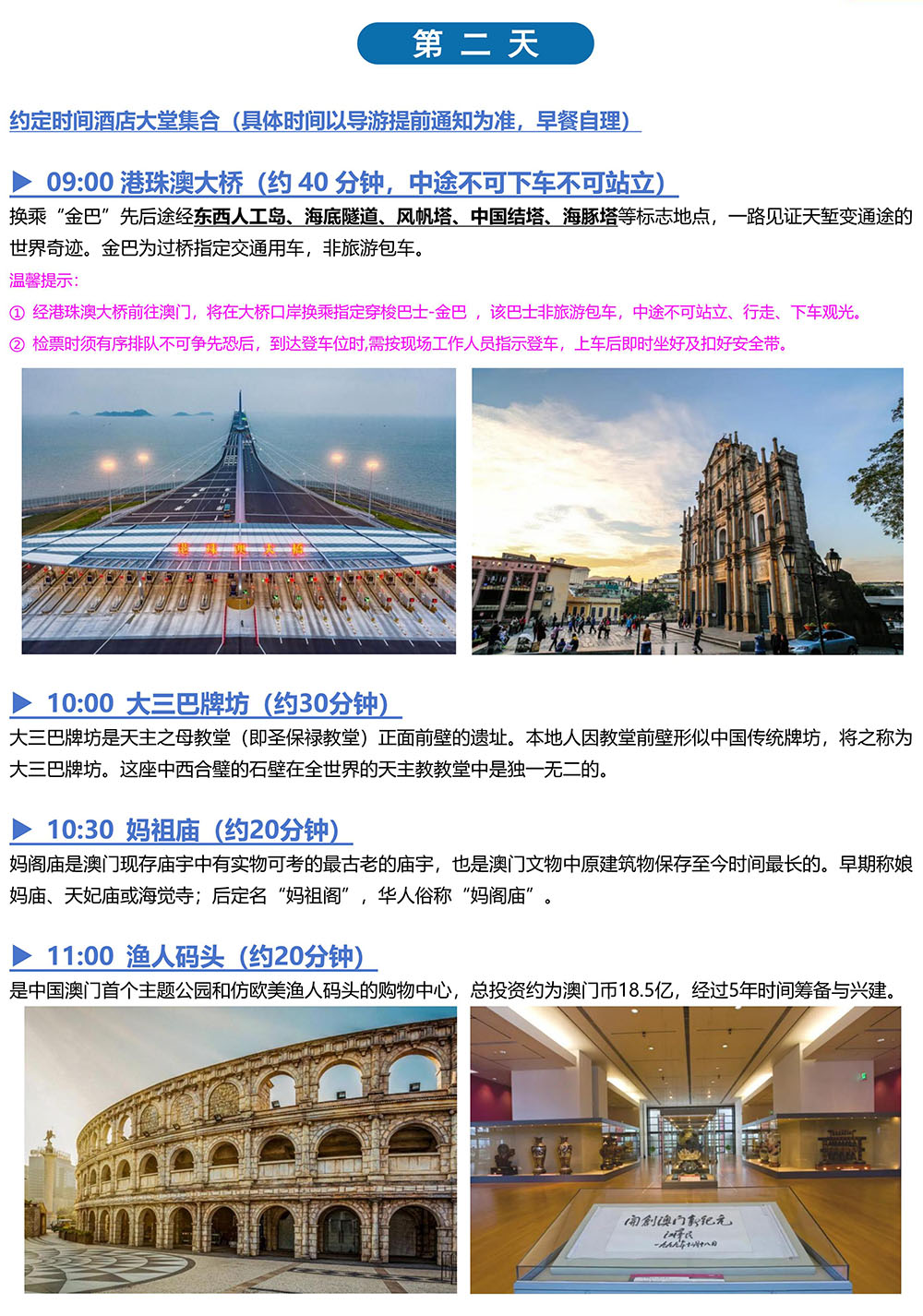 2、参加港澳游线路,请出发前提前1天或以上提供出行者的姓名、通行证号、联系电话(开通国际漫游功能)。